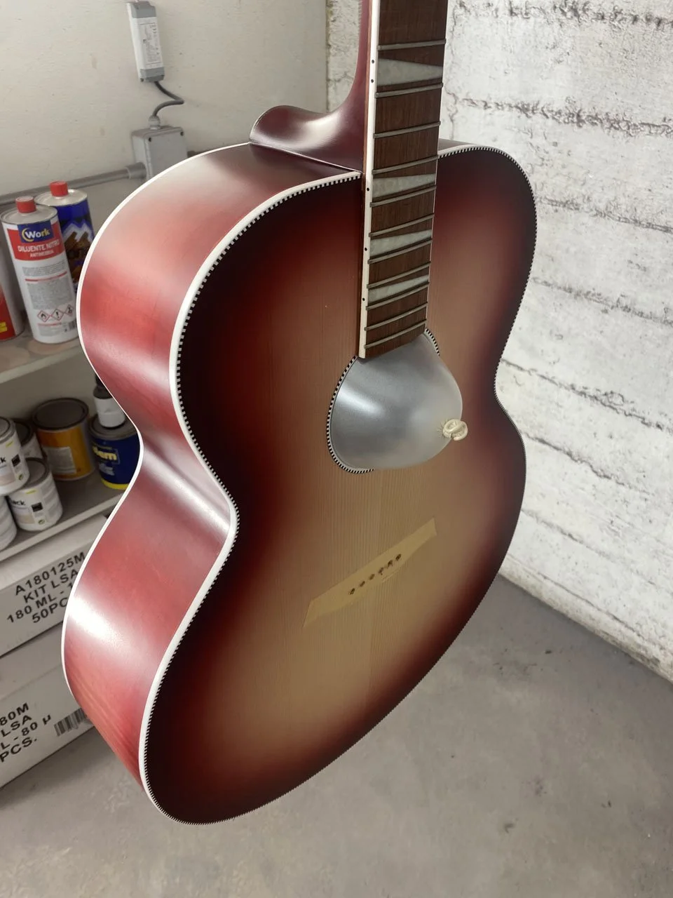We were contacted by a Rickenbacker acoustic owner who had trusted his rare Fireglo 700C to a repair person on the East Coast who spent a lot of time removing the neck for a reset before realising that he was in way over his head. Our customer found us in a Google search and contacted me. WE agreed to preliminary terms and scheduling, and he shipped his provide and joy off to our workshop here in Modena.