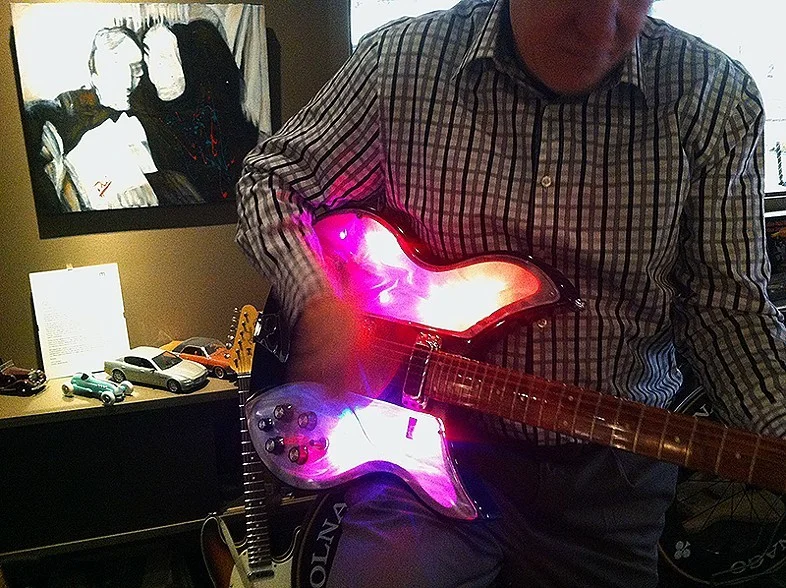No matter what the build date of the Solid State Studio California Light Show guitar or bass, the powered-by-9-volt battery circuitry is the same, and the lenses with their swirly plastic diffuser underlays are at the heart of the concept. It's a tidy package.